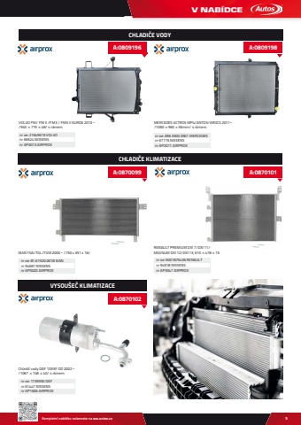 Kompletn%u00ed nab%u00eddku naleznete na ww.autos.cz 5V NAB%u00cdDCEA:0870101RENAULT PREMIUM DXI 7/DXI 11/MAGNUM DXI 12/DXI 13, 610 %u00d7 478 %u00d7 15A:0870099A:0870102Chladi%u010d vody DAF 105XF OD 2002 %u2013/1067 %u00d7 748 %u00d7 40/ s r%u00e1memCHLADI%u010cE VODYA:0809196 A:0809198MERCEDES ACTROS MP4/ANTOS/AROCS 2011%u2013 /1060 %u00d7 960 %u00d7 56mm/ s r%u00e1memnr oe: 21649619 VOLVOnr 65624 NISSENSnr AP3013 AIRPROXnr oe: A96 0500 0901 MERCEDESnr 67176 NISSENSnr AP2011 AIRPROXMAN TGA/TGL/TGM 2000 %u2013 /750 x 351 x 16/nr oe: 81.61920.0018 MANnr 94681 NISSENSnr AP5020 AIRPROXnr oe: 5001875436 RENAULTnr 94918 NISSENSnr AP3047 AIRPROXnr oe: 1739550 DAFnr 61447 NISSENSnr AP1006 AIRPROXCHLADI%u010cE KLIMATIZACEVYSOU%u0160E%u010c KLIMATIZACEOS/AROCS 2011%u2013 I 11/%u00d7 478 %u00d7 15dy DAF 105XF OD 2002 %u2013VOLVO FM/ FM II /FMX / FMX II EURO6 2013 %u2013/945 %u00d7 719 %u00d7 48/ s r%u00e1mem